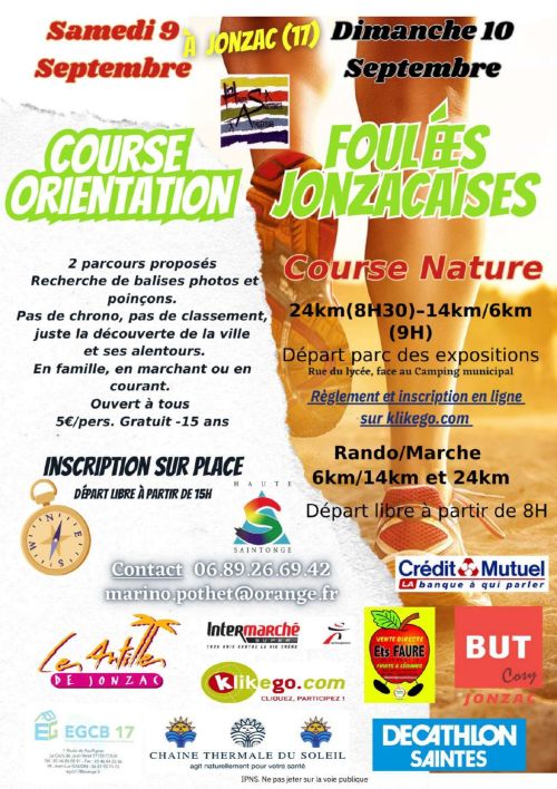 Foulées Jonzacaises : course en boucle, départ et arrivée parc des expositions de Jonzac. Parcours principalement sur chemins et sous bois avec un passage en ville. Challenge des Courses de la Haute Saintonge 2019