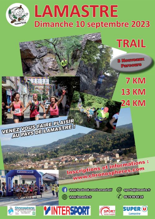 Le « LAMAS’TRAIL » est organisé par l’Office Municipal des Sports de Lamastre en partenariat avec les mairies de Nozières et Empurany, est une épreuve à parcourir en solo ou en relais à deux ou à trois. Le départ est donné devant l’Office de Tourisme de Lamastre et l’arrivée se fait en le centre-ville. Le parcours est entièrement balisé et emprunte des chemins à travers la campagne.