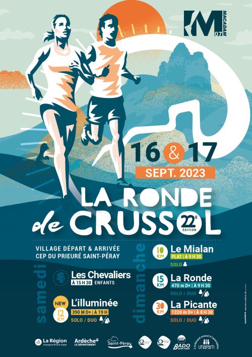 Course phare de la journée, l'itinéraire longe le Mialan avant de gravir la montagne de Crussol, suit les crêtes jusqu'au château de Meyret et enfin redescend sur SaintPéray. Catégories autorisées CA->V5.