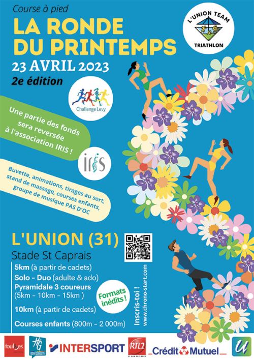 L’Union Team Triathlon organise La Ronde du Printemps (courses 5km, 10km et enfants ET un nouveau format pyramidale 15 Km) au départ du Stade de Saint-Caprais, ville de l’Union (31). Un partie des fonds récoltés sera reversée à l’association IRIS.