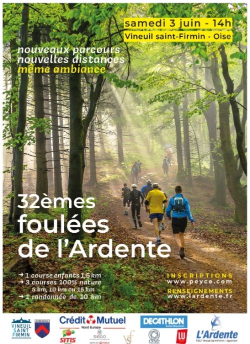 courses nature en foret de Vineuil saint Firmin et apremont. distance 5 ; 10 et 15 kms dénivelé max 60m D+ départ allée des huits rangs face au parc du château de chantilly nombreux et lots et tirage au sort foulées gourmandes ; repas restaurants