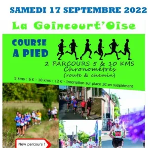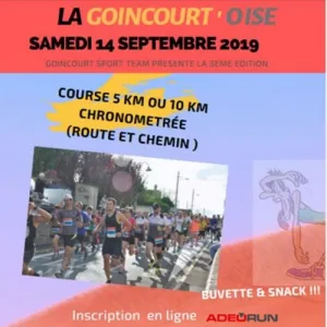La Goincourt'Oise. Circuits de 5 et 10 km sur route/chemin de la commune. Départ et arrivée rue Jean-Jaurès. Bonne humeur et ambiance festive garanties, pour partager une passion commune. Les déguisements seront fort appréciés. Organisée par l’APE de Goincourt.