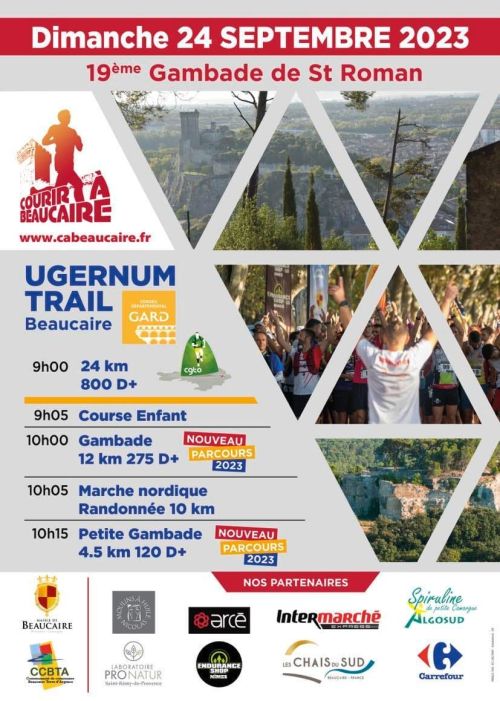 La Gambade de Saint Roman avec un parcours nature chemin et monotraces. Passages devant l'abbaye troglodyte de St Roman unique en Europe. 2 ravitaillements parcours - 1 ravitaillement arrivée. 100% nature parcours sélectif de 25 kms avec un D+ de 800m autosuffisance 1 seul ravitaillement au 11 km,. Traversée du château fort, passage au pied de L'abbaye de St Roman