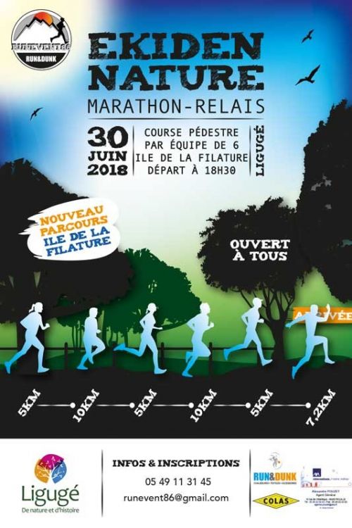 EKIDEN nature par équipe de 6. Ouvert à tous. Nouveau parcours autour de l’île de la Filature de Ligugé