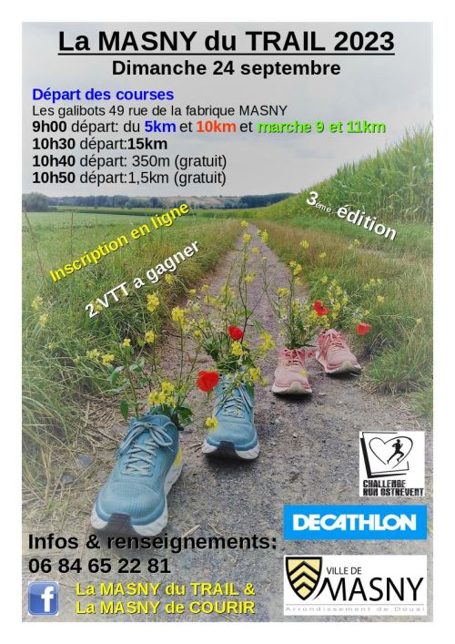 L’association « La Masny de courir », en partenariat avec la ville de Masny et la CCCO organise son Trail « La Masny du Trail ». Les courses se dérouleront principalement sur des chemins ruraux. Elles comportent un classement en fonction du chronométrage.