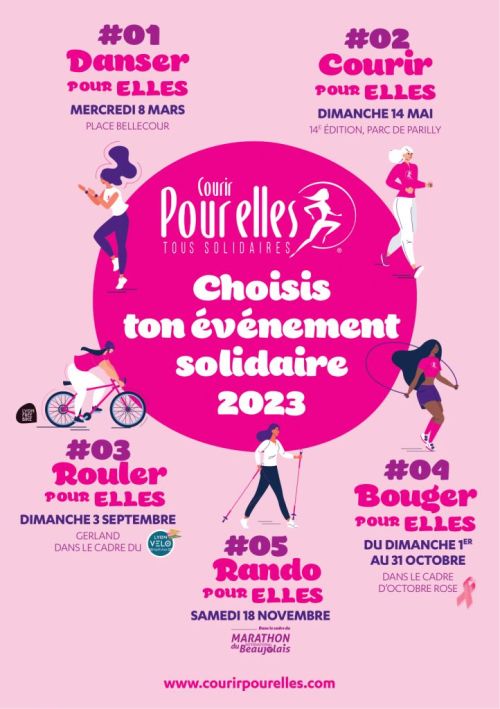 Journée festive et caritative, basée sur une course/marche de 5 ou 10 km, réservée aux femmes, et dont l'intégralité des excédents est reversée aux soins de supports. D'un projet familial, puis amical, notre évènement est devenu la première course féminine, caritative en région Rhône Alpes.