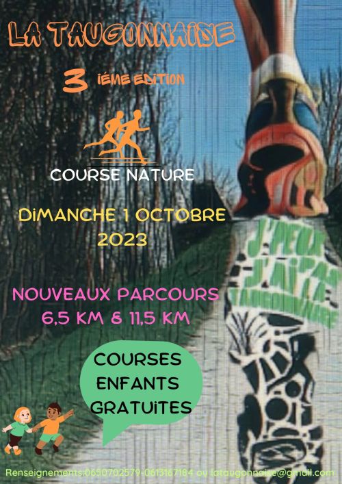 La Taugonnaise avec 2 courses natures. Parcours empruntant routes et forêts avec passage sur petites parcelles sur les communes de Taugon(17) et de Vix (85).