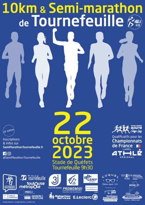 Semi-marathon & 10 km, grand rendez-vous annuel organisé par le club Athlé 632 à Tournefeuille. Qualificatifs pour les championnats de France. Départs simultanés pour chaque épreuve rue de la Garenne en direction de la base de loisirs de la Ramée avec une arrivée prévue à l'Espace de Quéfets, Boulevard Alain Savary.