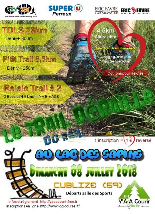 Y'ACA Courir organise depuis 2008 une course nature sur ses terrains d'entraînements avec la belle envie de vous faire partager ces chemins. 10 éditions du Trail du Rail à Amplepuis puis cette année le Trail déraille au Lac des Sapins à Cublize (69).