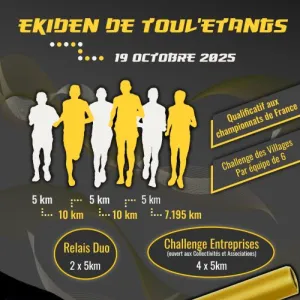 Ekiden de Toul' Etangs, une épreuve de course à pied en relais. Les équipes composées de 6 personnes, réalisent la distance officielle d’un marathon : 42.195km.