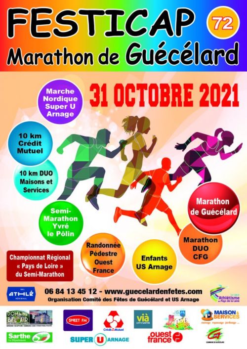 Marathon de Guécélard avec comme nouveautés des courses DUO (relais) sur le Marathon et sur le 10 km, un positionnement de la ligne d’arrivée différenciée de la ligne de départ et un timing des épreuves révisé. La manifestation est organisée par l'US Arnage Athlétisme et le Comité des Fêtes de Guécélard.