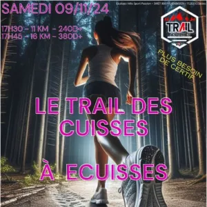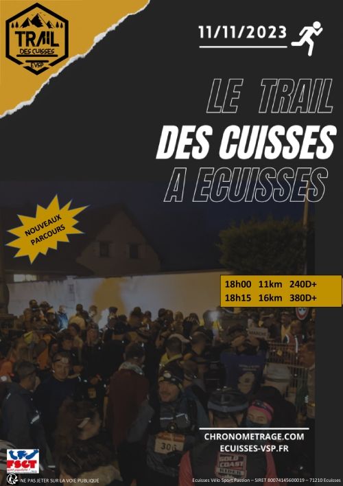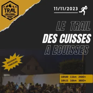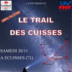 Trail Nocturne des Cuisses à Ecuisses avec 2 parcours natures bien sympas. Lots pour tous, ambiance garantie et ravito final gourmand!