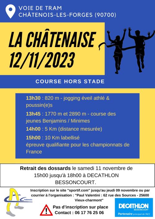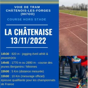Sans difficulté, son parcours le long de la coulée verte et son arrivée sur le stade de l'A.C. Chatenois, en font une course agréable et conviviale. Épreuve comptant pour le challenge Départemental