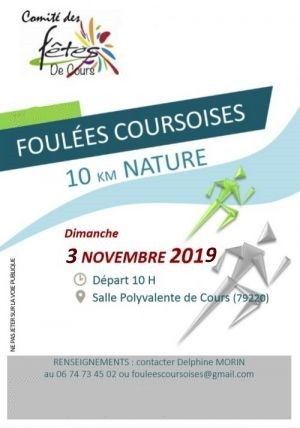 Les Foulées Coursoises sont organisées par le Comité des Fêtes de Cours. La course est ouverte à toute personne, licenciée ou non. Les mineurs (à partir de 16 ans) devront avoir une autorisation parentale.