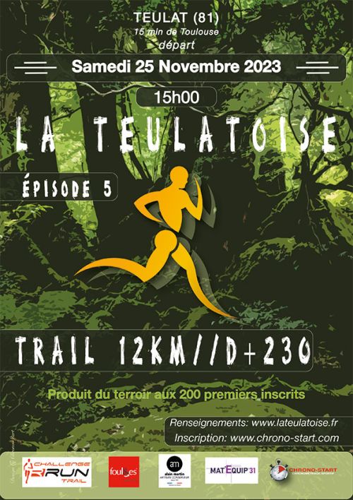 Petite course nature sans prétention, qui se déroulera sur la commune de Teulat à 15′ environ de Toulouse. Une course sera au programme. Un repas sera possible après l’effort et des produits du terroir, genre pâté ou terrine, seront offerts aux 300 premiers inscrits…