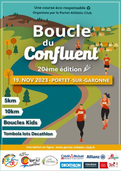 Portet Athletic Club organise la 16ème édition de la Boucle du Confluent (5km et 10km, courses enfants) au départ de la Mairie de Portet-sur-Garonne. Cette année la Boucle du Confluent soutiendra l'association "Les Petits Bourdons". La Boucle du Confluent est une course sur route qui emprunte les bords de la Garonne. Le parcours est mesuré officiellement selon les règles en vigueur de l'IAAF. Marquage tous les 100m sur le dernier kilomètre.