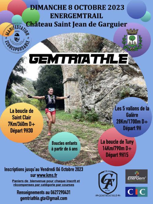 Le Gémenos Tri Athlé et le Trail Club de Provence vous proposent un petit bijou de Trail 100% sauvage, 100% authentique, au départ du village de Gémenos ! Un événement à ne manquer sous aucun prétexte ! Avec ses partenaires et l'énergie de tous, Le GEM TRI ATHLÉ organise l'EnerGemTrail. Entièrement sur la commune de Gémenos, 99% de chemins. Dans le respect des espaces naturels, avec des singles inédits et un décor grandiose!