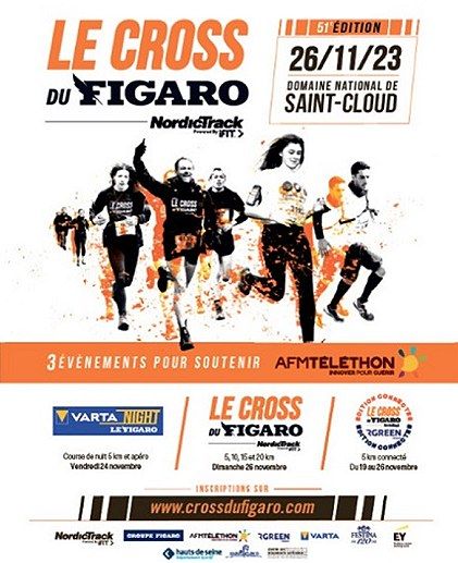 Le Cross du Figaro s’engage pour soutenir le Téléthon. Par ailleurs, le Cross du Figaro est fier d’être l’événement inaugural du Téléthon. Grâce à l’énergie de tous les runners, le Cross du Figaro donnera le départ de cette semaine de mobilisation populaire exceptionnelle à travers plus de 20 000 animations.Les bénéfices de la vente des t-shirts et une partie des montant des inscriptions au Cross du Figaro sera reversée au Téléthon.
