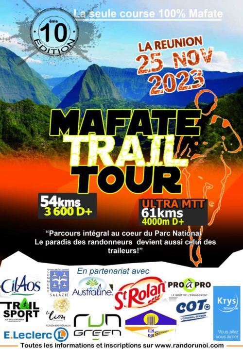 Dans le prestigieux cirque de Mafate se déroulera la 6ème édition du Mafate Trail Tour. Défi sportif, aventure, découverte, le MTT vous plongera au cœur de l’île à grand spectacle classé patrimoine mondial de L’UNESCO. Le paradis des randonneurs devient aussi celui des coureurs de montagne ! Venez courir l’exceptionnel...