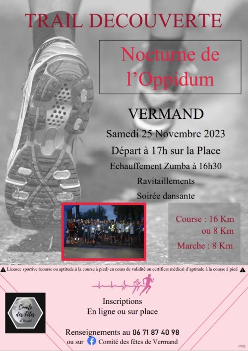 Trail Nocturne sur un parcours de 16 km le 25 novembre 2023