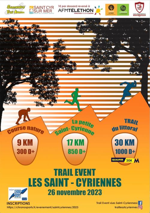 L’association "SALAMANDRE TRAIL AVENTURE" en collaboration avec la municipalité de Saint Cyr sur Mer organisent le TRAIL EVENT « Les Saint Cyriennes ». Courses pédestres sur chemins et sentiers.