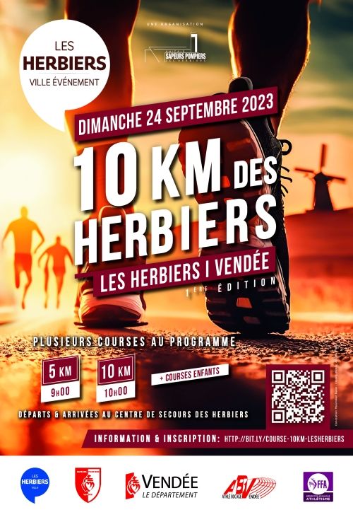 La 1ère édition du 10 Km des Herbiers aura lieu le dimanche 24 septembre 2023 dans la Ville des Herbiers en Vendée (85). Cette manifestation sportive est organisée par l'Amicale des Sapeurs-Pompiers des Herbiers, en collaboration avec l'ABV Les Herbiers (Club d'athlétisme).