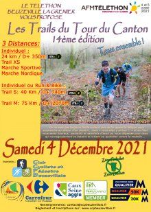 Trail du Tour du Canton à Beuzeville-la-Grenier. Les 3 courses de cette édition sont "UTMB Qualifier Wolrd Series". Toutes les inscriptions seront reversées à l'AFM au profit du Téléthon.