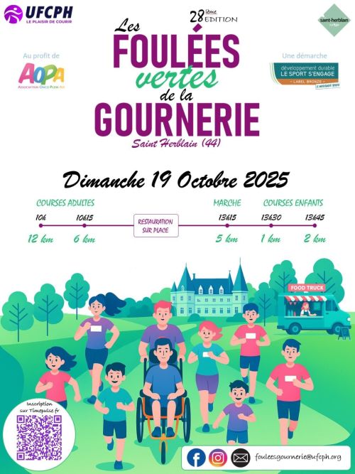 Le club UFCPH "Le plaisir de courir" organise la 28ème édition des "Foulées de la Gournerie" le dimanche 19 octobre 2025 à Saint-Herblain.
