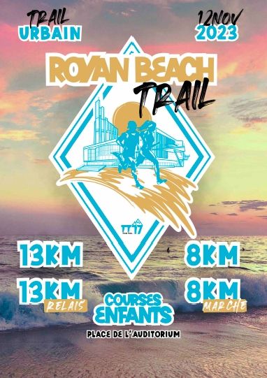 Toute l'équipe de la Team Trail 17 est heureuse de vous annoncer le lancement de la 1ère édition de son Trail Urbain le " Royan Beach Trail " qui aura lieu le dimanche 12 novembre 2023 place de l'auditorium à Royan !!🏃🏃♀️ 📍 Au programme : ✅️Un 8 kms ✅️Un 13 kms en solo ou en duo (8 + 5) ✅️Une marche chronométrée de 8 kms ✅️Des courses pour nos petits 👶 Tout cela à travers les sites prestigieux de notre belle Ville de Royan , sans oublier sa superbe plage et son sable redoutable.... 📍 Pour les inscriptions et informations complémentaires, encore un peu de patience...En cours de traitement.....📽 📍 Vous pourrez nous suivre sur notre page fb et Insta Royan Beach Trail où nous ne manquerons pas de vous donner les informations au fur et à mesure. Hâte de vous retrouver sur la ligne de départ!👊