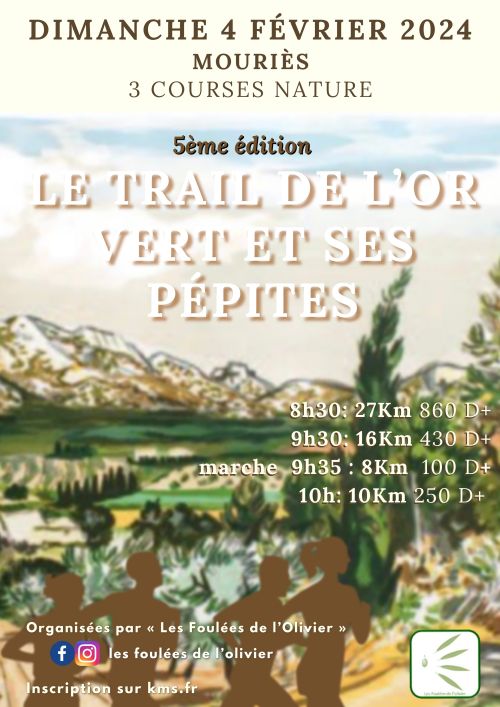 Le Trail de l'Or Vert et ses Pépites organisé par l'association LFO avec au programme, 3 courses nature dont un trail sur les sentiers magnifiques des Alpilles.