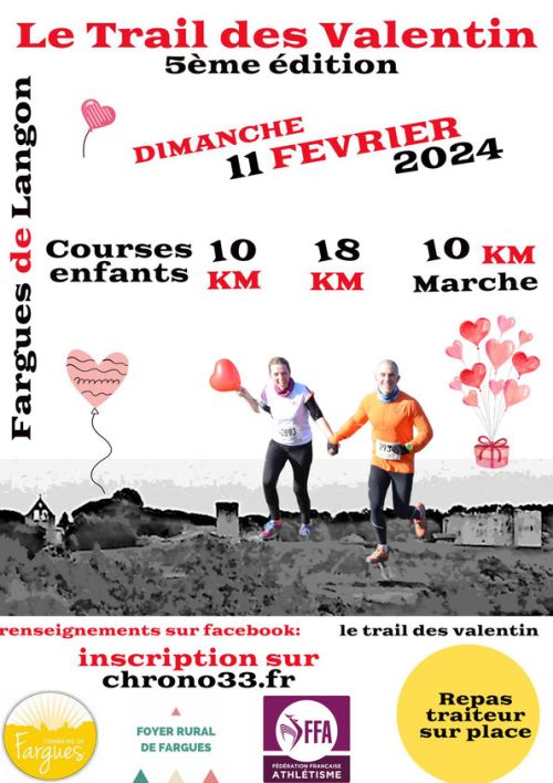 Le foyer rural de Fargues de Langon organise le TRAIL DES VALENTINS.