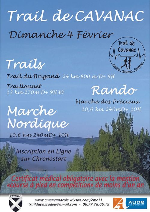 Trail de Cavanac avec 2 parcours. Les épreuves sont organisées par les coureurs et marcheurs Cavanacois au départ de Cavanac.