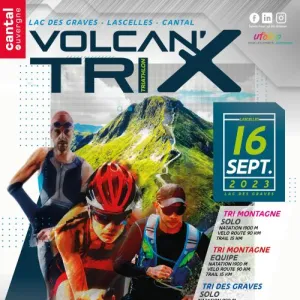 Du Triathlon dans le plus grand Volcan d'Europe au milieu du massif cantalien ! Le Volcan'x Tri est une course de Triathlon organisée dans le Cantal. Les formats de courses permettent de ravir les athlètes confirmés comme les débutant avec un grand format, le Tri Montagne et un petit format, le Tri Découverte ainsi que la possibilité de faire le Tri Montagne en relais par équipe.