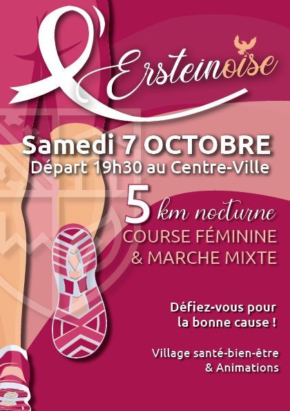 La ville d’Erstein participe pour la première fois à la campagne nationale Octobre Rose et vous propose une course illuminée en Rose, nocturne, féminine chronométrée de 5 km à travers la ville accessible également aux marcheurs (mixte).