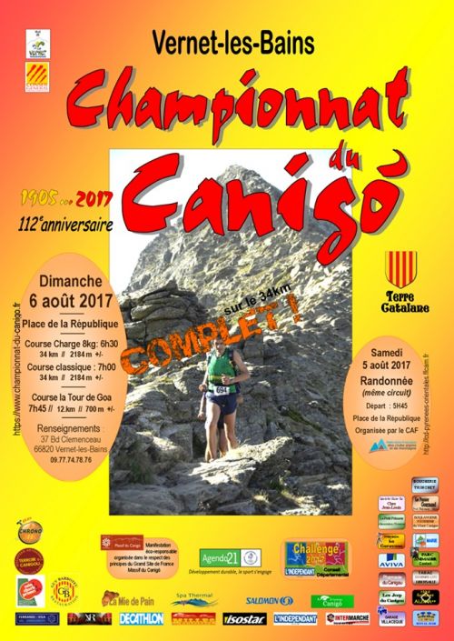 Le Championnat du Canigó, créé en 1905, est un ancêtre des trails actuels, toujours fidèle à l’esprit qui présidait à sa première édition ; il est peut-être la plus ancienne course de France sur son parcours d’origine. Boucle de 34 km en montagne avec départ et arrivée à Vernet-les-Bains (650 m). 18 km de montée avec des pourcentages énormes (2200 m de dénivelée positive), passage par la "Cheminée" (paroi d'une centaine de mètres où il faut s'aider des mains, plus impressionnant que dangereux mais déconseillé aux personnes souffrant de vertige) avant l'arrivée au sommet du Pic du Canigó (2784 m). Puis descente très technique, vertigineuse, pour rejoindre Vernet 16 km plus bas. Le circuit est tracé dans le Massif du Canigó (classé Grand Site de France) essentiellement sur terre et éboulis (90 %) à travers forêts de conifères, landes et pelouses de montagne. Parcours très technique, exigeant, avec un rapport distance/dénivelée élevé, tracé dans un décor exceptionnel. En 2017, et pour la troisième année consécutive, le jury du Comité National Olympique et Sportif Français lui a attribué le label ‘’Développement durable, le Sport s’engage’’. Annulée en 2017 pour cause de très mauvais temps (orages violents et grêle) rempmlacée par le circuit de repli dit Course de Mattes rouges. Catégories autorisées ES->V5.