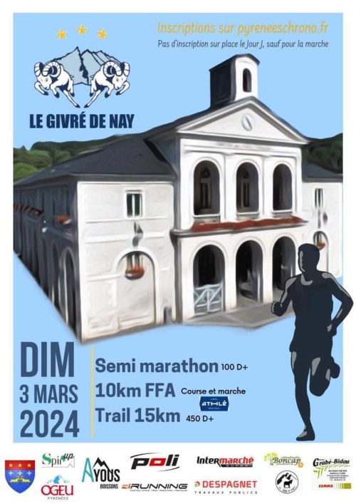 Le Givré de Nay organisé par l’association « Les Givrés de Nay ». Au programme, un semi-marathon, un 10 km route labellisés FFA. S’ajouteront un trail de 10 km et un trail de 15 km, ainsi qu’une marche de 10 km.
