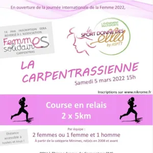 L'ASPTT Carpentras organise La Carpentrassienne, un Relais 2x 5 Km Feminin ou mixte by "Le sport donne des Elles"