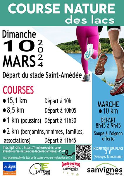 La course nature des lacs est inscrite depuis cette année au calendrier officiel du comité départemental d’athlétisme. Pour les courses et les marches, vous pouvez venir déguisés. Une récompense sera remise au participant le mieux déguisé.