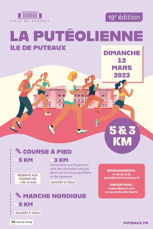 5 km sur l’île de Puteaux réservé aux femmes de plus de 14 ans. Epreuve ouverte aux handicapé(e)s, Catégories autorisées MI->V5.