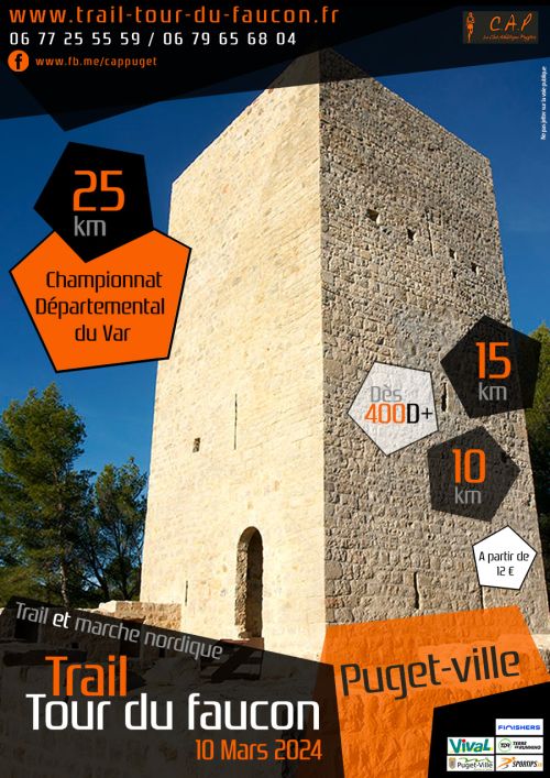 Le club athlétique Pugétois organise le Trail de la Tour du Faucon à Puget ville dans le var. Course à pied en zone pierreuse et boisée, ouverte à tous. Depuis plus de 10 ans, les coureurs et marcheurs viennent défier la forêt de Puget-ville.