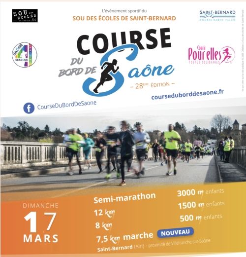 Le course du bord de Saône est née en 1995, et fête cette année sa 29e édition ainsi que sa participation au Challenge Saône 4 Seasons. Elle est organisée par le sou des écoles de Saint-Bernard au profit des écoliers spinosiens. Notre association à but non lucratif est composée de bénévoles, qui rassemble des fonds pour aider les enseignants de la commune au financement des activités culturelles, sportives et pédagogiques. Un parcours ludique est aménagé sur le stade pour les tout-petits (3-5 ans), sous la responsabilité des parents, parce qu’eux aussi, peuvent profiter d’une demi-journée de sport !