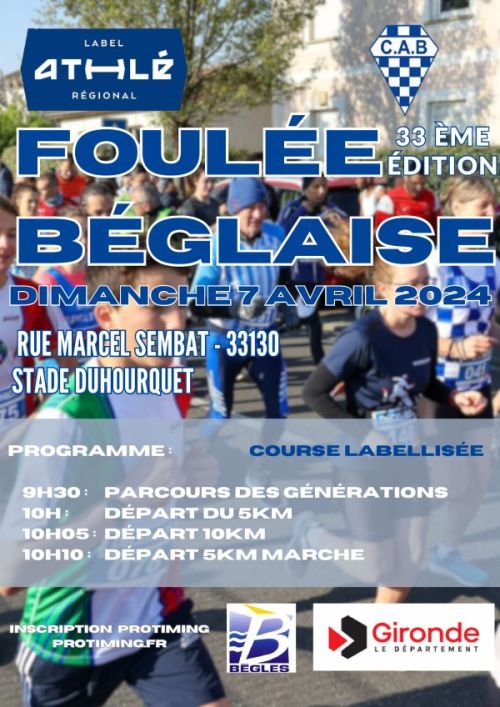 Le CA Béglais athlétisme, vous propose deux distances, un 5 kilomètres et un 10 kilomètres (2 fois la boucle de 5 à parcourir). Le 5 kilomètres sera le support du championnat de Gironde.