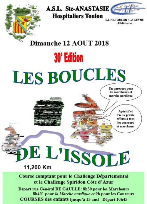Circuit en 2 boucles vallonnées longeant l'issole. Nombreux lots par tirage au sort des dossards, repas d'après course offert aux participants sur pré réservation. Parcours ouvert à la marche et Marche Nordique Epreuve ouverte aux handicapé(e)s, Catégories autorisées CA->V5.