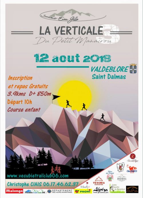 Courses en montagne de type trail (kilomètre vertical ou montée sèche) se déroulant en autosuffisance ou semi autosuffisance ouvertes à tous. L’arrivée est située à la cime du Cayre Gros à 2087m d’altitude. Course enfant sera lancée après le départ de la verticale et arrivée à la plate forme d'observation de la colline de Saint Dalmas.