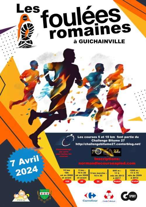 Foulées Romaines comptant pour le challenge Bithume 27. Adultes et Enfants, Coureurs et Marcheurs, venez à Guichainville.