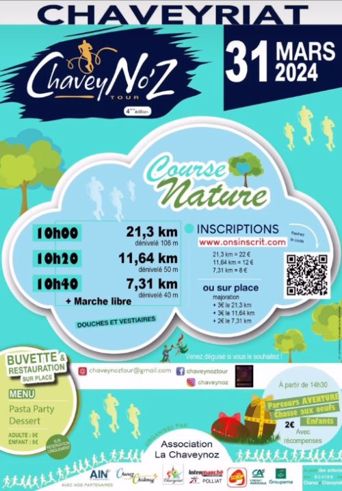 L’Association La ChaveyNo'Z, assistée de nombreux bénévoles, organise le ChaveyNo’z Tour, Course à pied nature entre Dombe et Bresse, sur les petites routes et chemins de Chaveyriat.