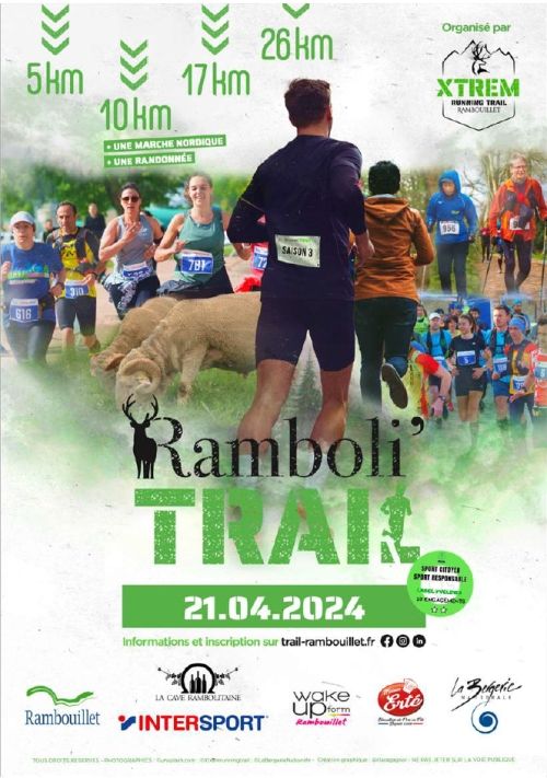 Le club de trail rambolitain XTREM RUNNING TRAIL (XRT), section de l’association omnisports Rambouillet Sports, organise le dimanche 21 avril 2024 à partir de 08h30 des épreuves de courses à pied sous le nom de " RAMBOLI’TRAIL" à la Bergerie nationale de Rambouillet, l’espace de l’Office National des Forêts (ONF) et le parc du château de Rambouillet.