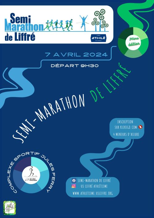 Semi Marathon de Liffré labellisé FFA – National. Le départ sera donné à 9h30 sur le Stade d’Athlétisme de Liffré.