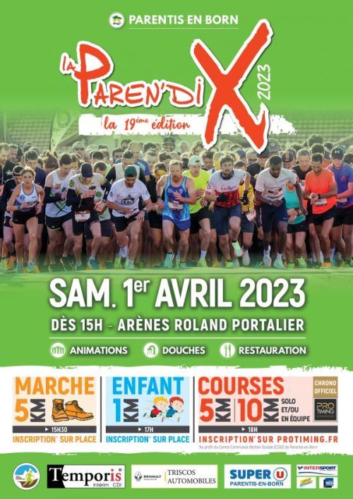 Quatre courses de 1, 2, 5 et 10 km : La Paren’dix débute par le challenge Alain Surrullo, course longue d’1 kilomètre, suivie d’une épreuve de 2 kilomètres réservées exclusivement aux enfants. Viennent ensuite les courses officielles des 5 et 10 km et le challenge 10 km par équipe.