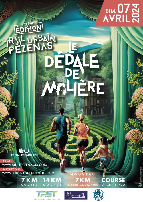 Le Dédale de Molière à Pézenas avec un départ sur le Cours Jean Jaurès. Un Trail Urbain dans la ville de Molière et ses alentours, au cœur d’un patrimoine historique exceptionnel, conjuguant défi sportif, découverte touristique, animations et sensibilité écologique pour les sportifs de tous âges et tous niveaux !